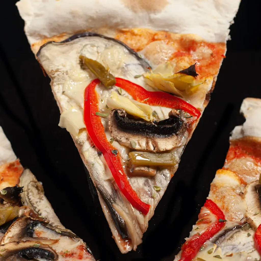 La especialidad de la casa, viene con: Salsa, queso, rúcula, parmesano, tomate seco y pimiento asado.